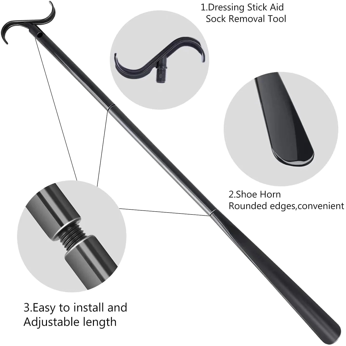 De Multi-Aankleedhulp is een handig 3-in-1 hulpmiddel dat helpt bij het aantrekken van sokken, het aandoen van schoenen en het uittrekken van een jas of kleding. Dankzij het lichte, ergonomische ontwerp en de handige haak- en schuiffuncties maakt dit hulpmiddel dagelijkse aankleedhandelingen een stuk eenvoudiger, zonder te bukken of kracht te zetten. Ideaal voor ouderen, mensen met beperkte mobiliteit of tijdens revalidatie.